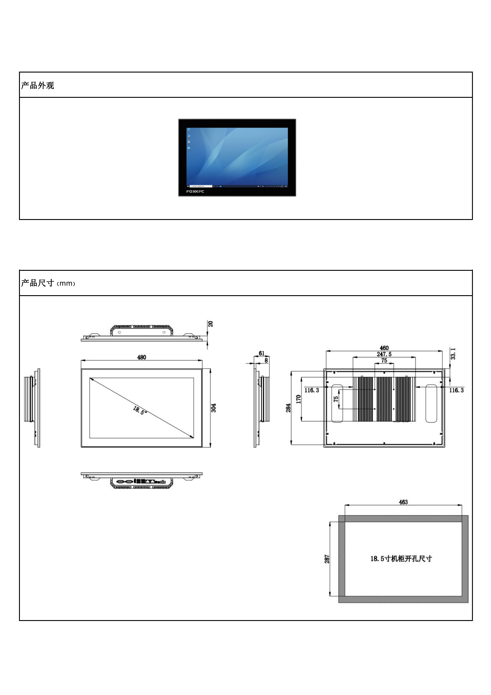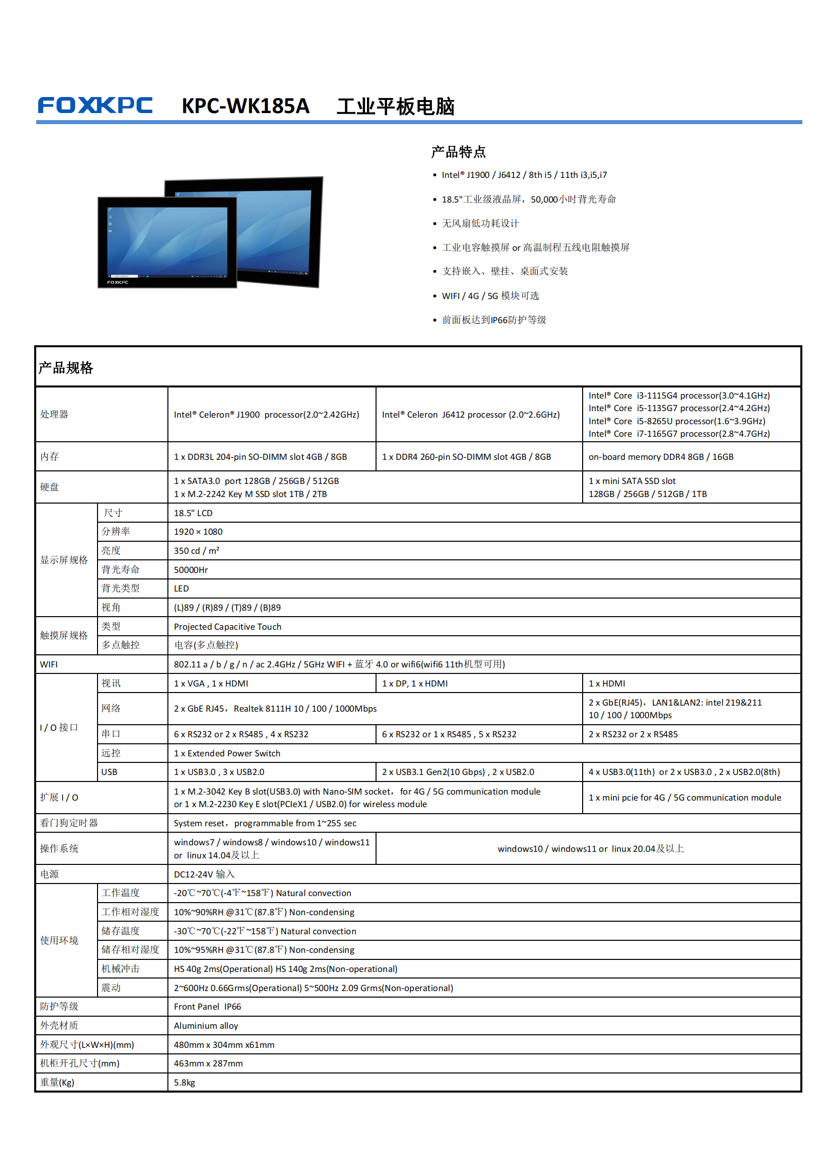 • 18.5"工业级液晶屏,50,000小时背光寿命