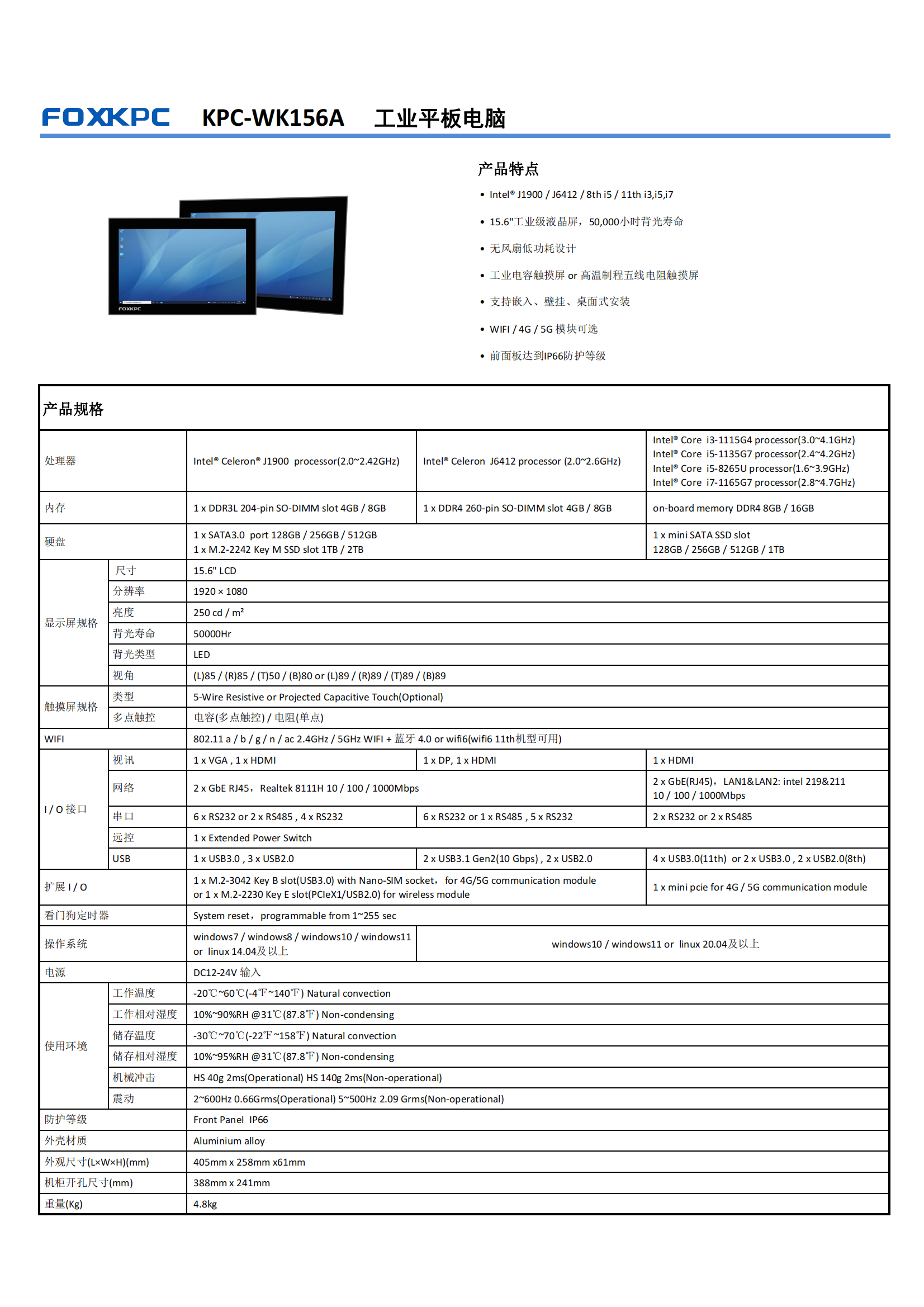 • 15.6"工业级液晶屏,50,000小时背光寿命