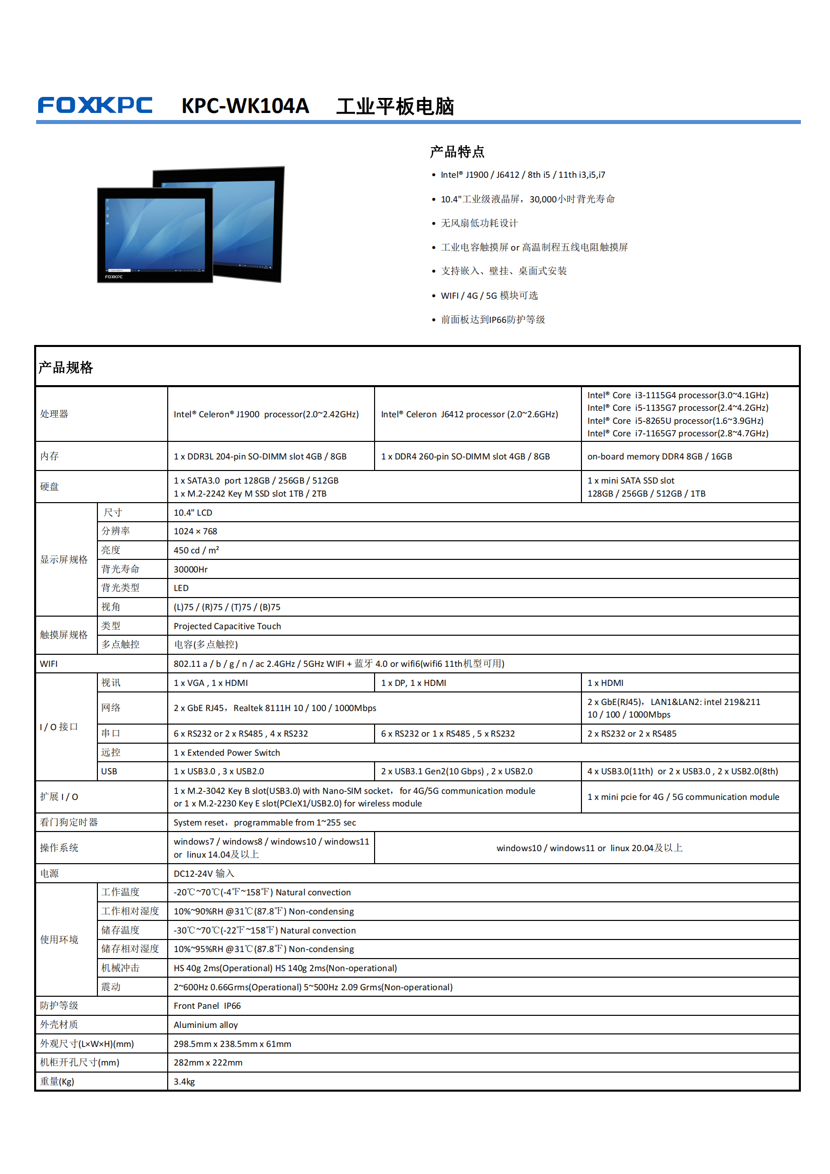 • 10.4"工业级液晶屏,30,000小时背光寿命
