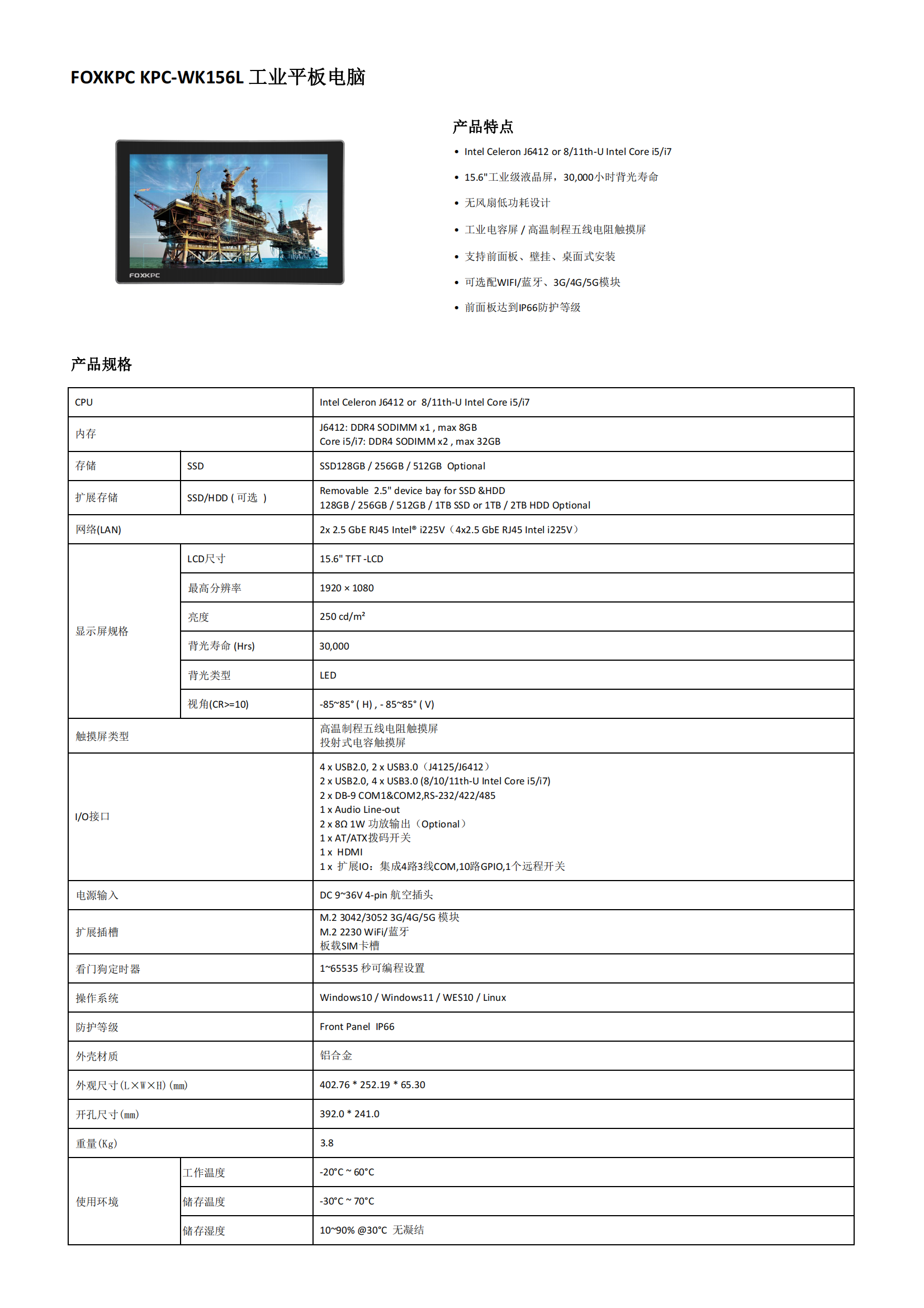 KPC-WK156L (J6412)工业平板电脑