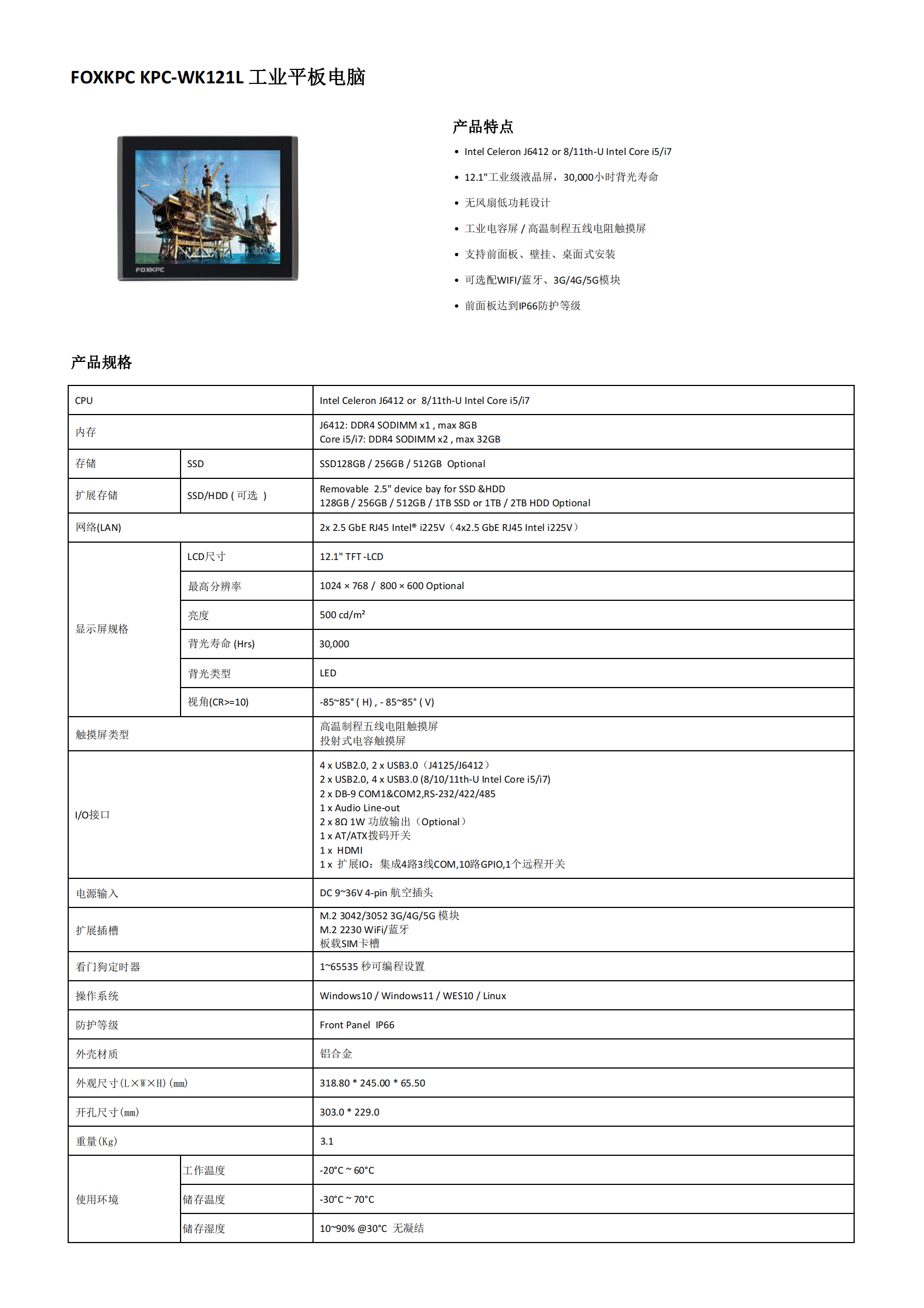 12.1"工业级液晶屏,30,000小时背光寿命