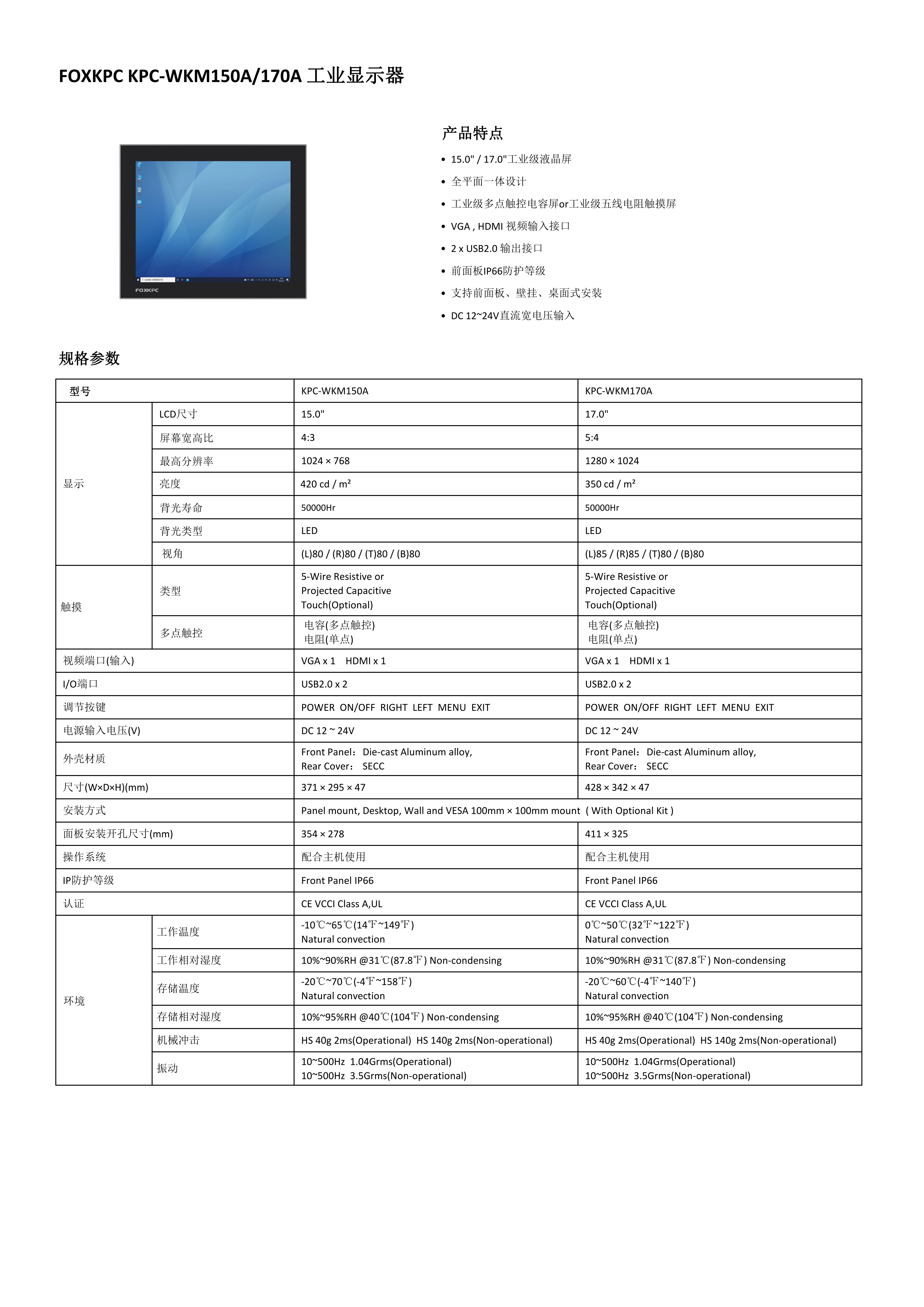 • 15.0"高背光寿命工业级液晶屏