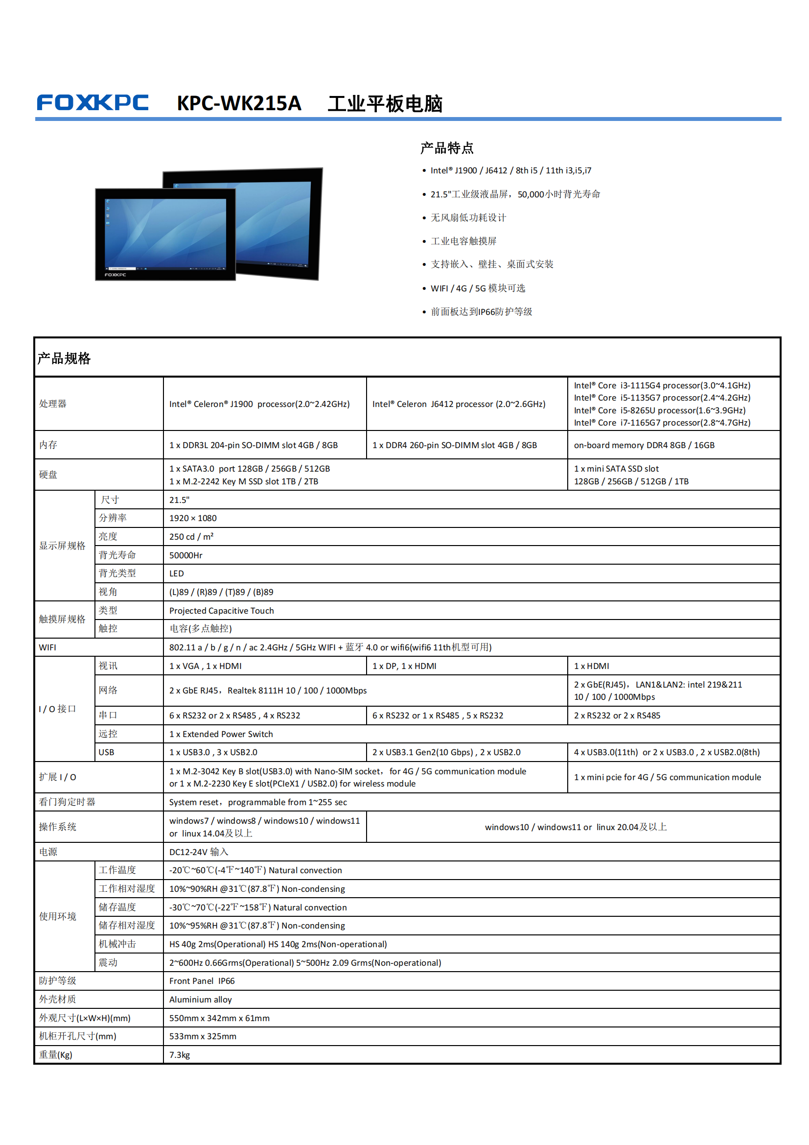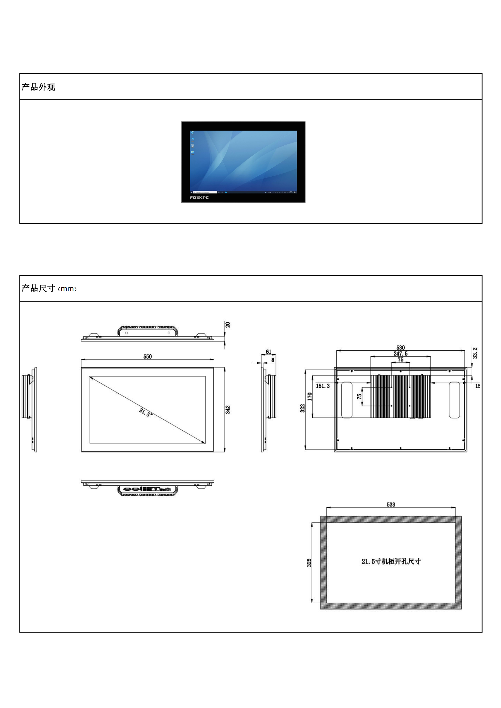• 21.5"工业级液晶屏,50,000小时背光寿命